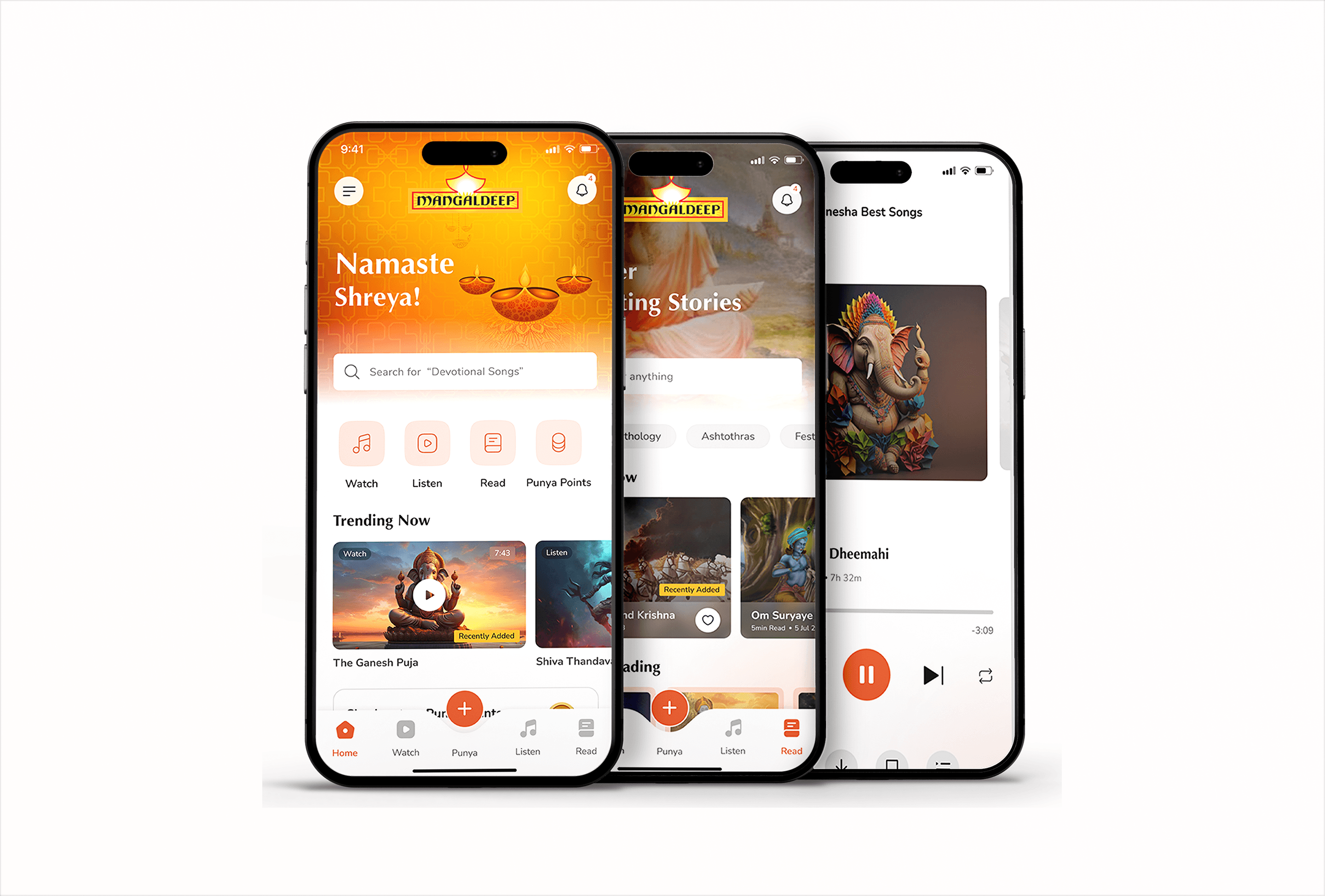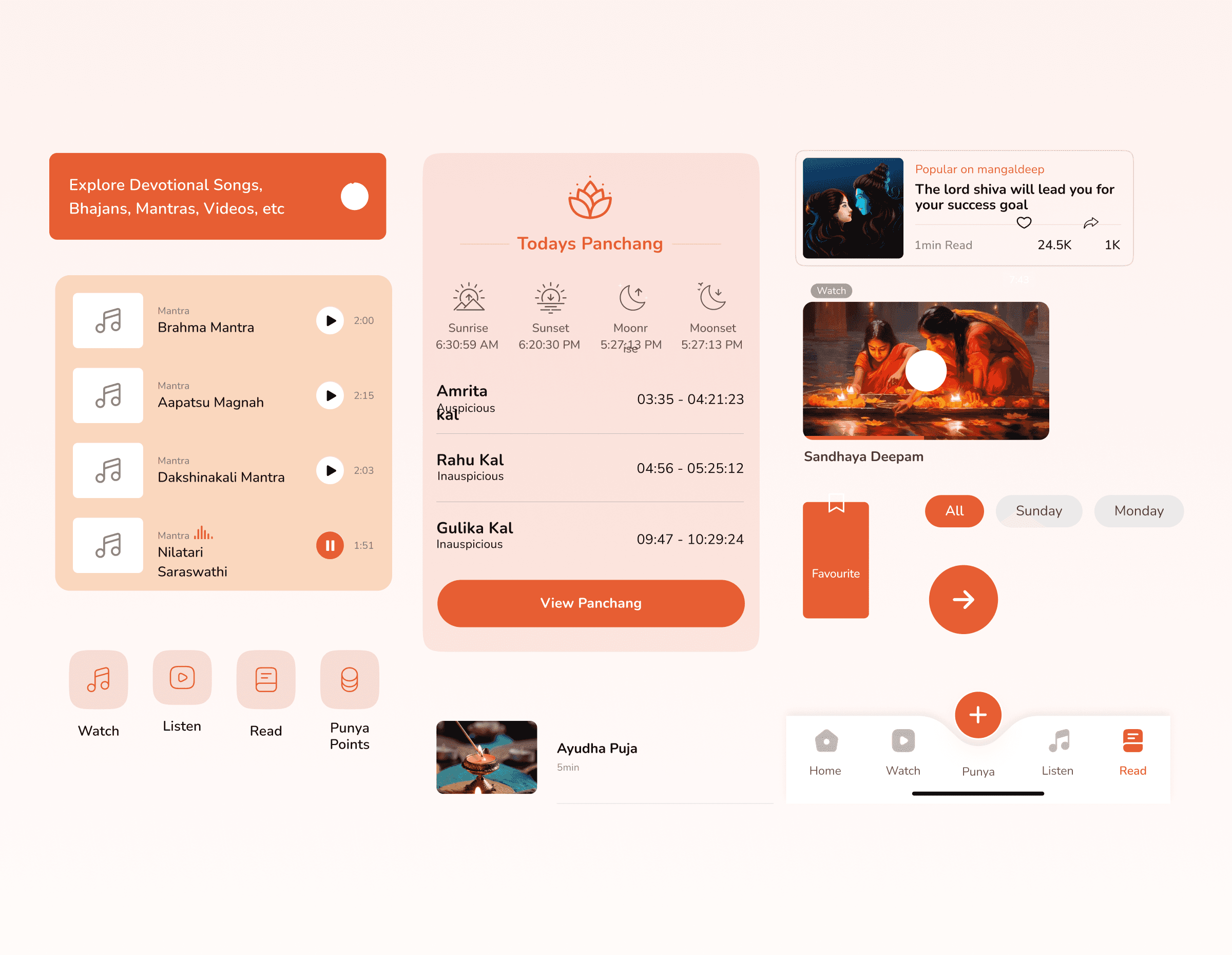 A clean, modern devotional design system positioned Managldeep as a premium, trustworthy spiritual platform—boosting user trust, credibility, and long-term growth.
